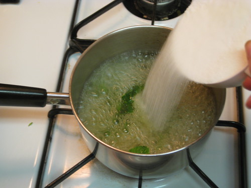 Boil one cup of water with four or five sprigs of mint leaves. Tear and crush the leaves beforehand so they will release more oil. (Don't abuse them too badly though, or Sarah Palin will lead chants of "Drill baby, drill!" in your kitchen.)