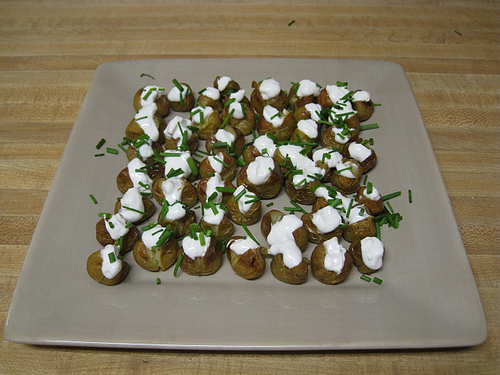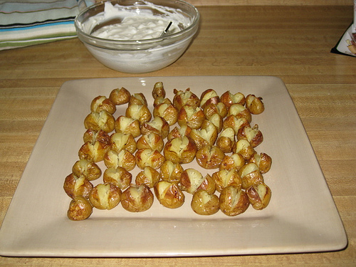 Start making second batch right away because this plate will last six people about ten minutes. Blue Cheese Potatoes