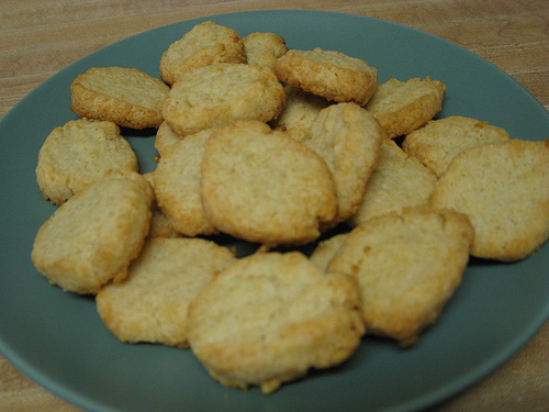 Bake about ten minutes in a 400 degree oven. Just until crisp around the edge.