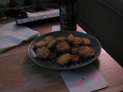 Give them what they want. For some reason people want to see Jessica Simpson in the stands cheering on Tony Romo. Others want as many shots as possible of Brady Quinn sitting on the bench. (By my count, the networks have only cut to him once or twice all season.) And some sick puppies don't believe they rerun the footage of Joe Theisman breaking his leg enough. Fans of the Friday Football Foodie apparently want more cheese. Both of these recipes are so easy that if you need second batches during your party, you will have more than enough time at the half to get these going and check your fantasy score. This week: Parmesan Crisps, Blue Cheese Potatoes and Chris Cooleys. Let's just hope the last one is dairy-free. You will need...